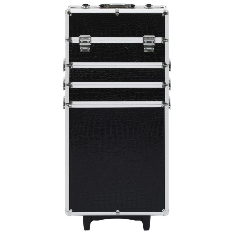 Kosmetikkoffer Aluminium Schwarz mit Krokoprägung