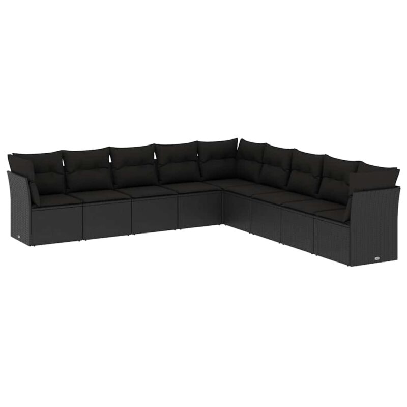 9-tlg. Garten-Sofagarnitur mit Kissen Schwarz Poly Rattan