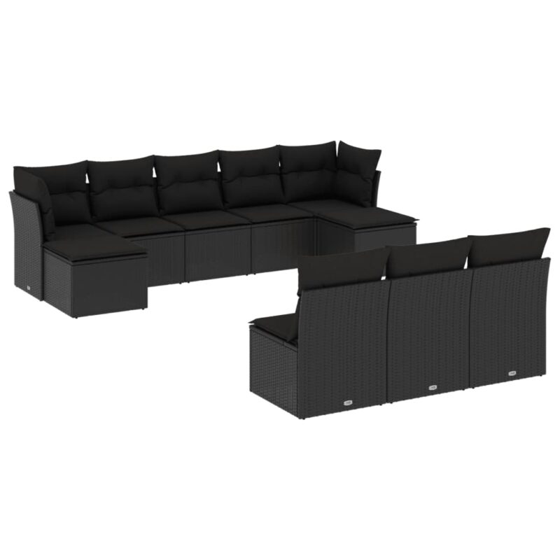 10-tlg. Garten-Sofagarnitur mit Kissen Schwarz Poly Rattan