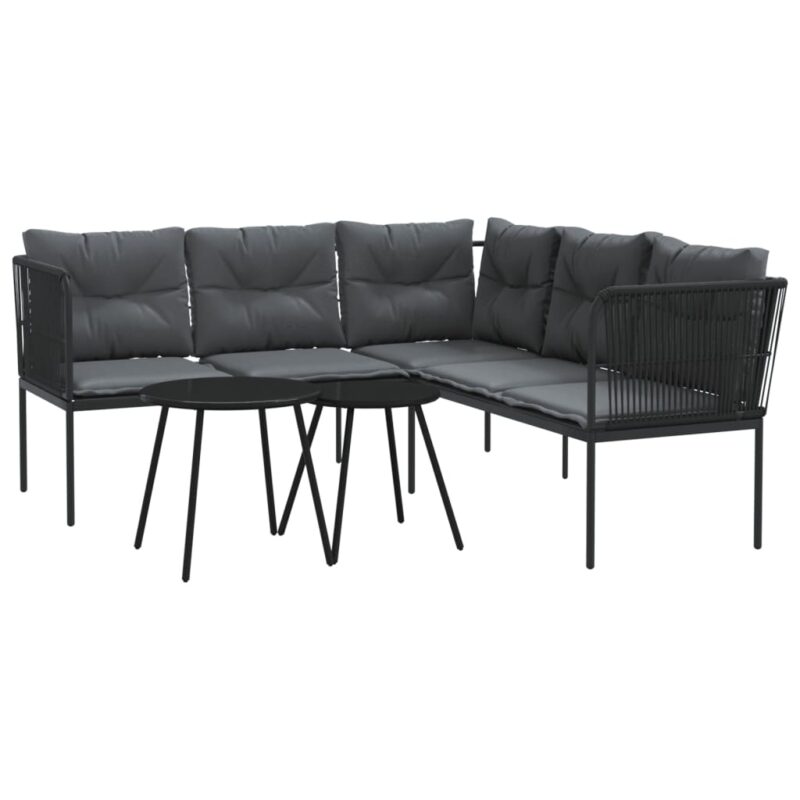 Garten-Sofagarnitur mit Kissen Schwarz Stahl und Textilene