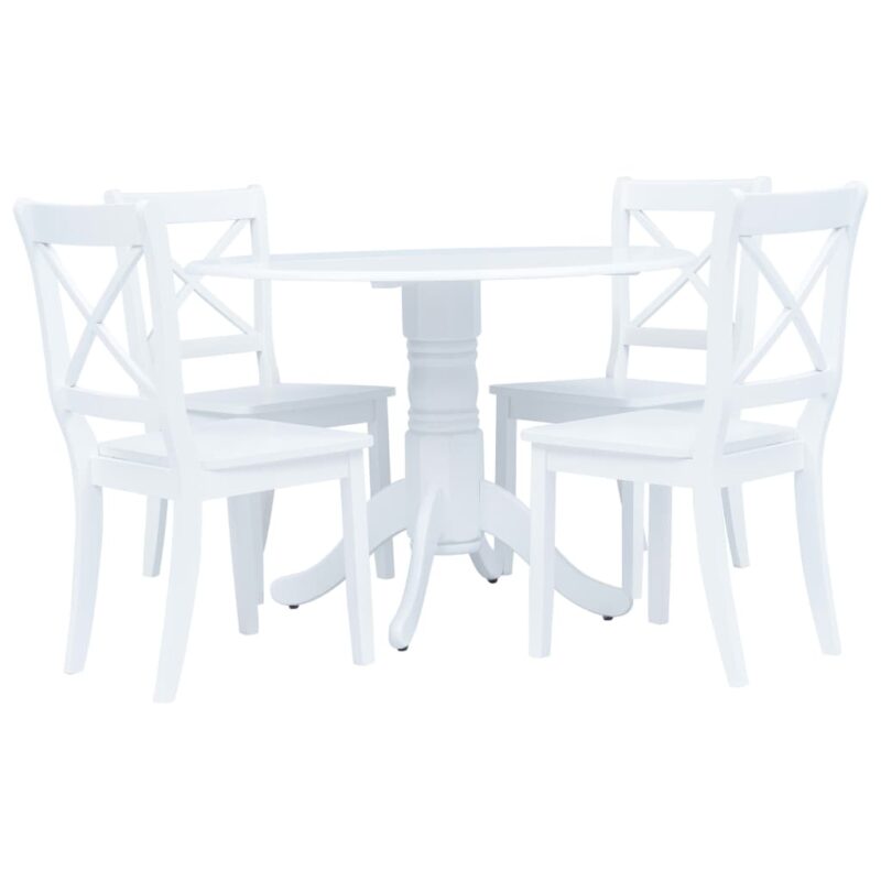 5-tlg. Essgruppe Gummiholz Massiv Weiß