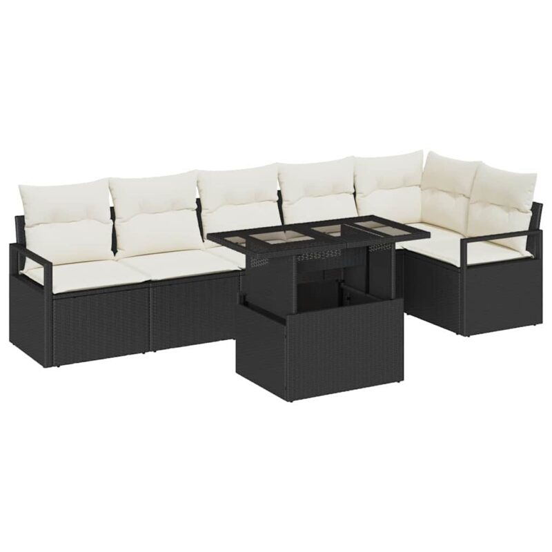 Garten-Sofa-Set mit Speicher 7 pcs Schwarz Poly Rattan