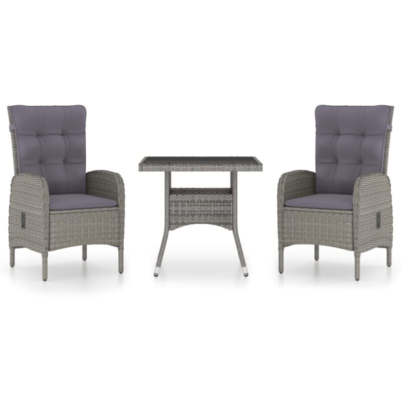 5-tlg. Garten-Essgruppe Poly Rattan und Glas Grau – Massivholz Akazie