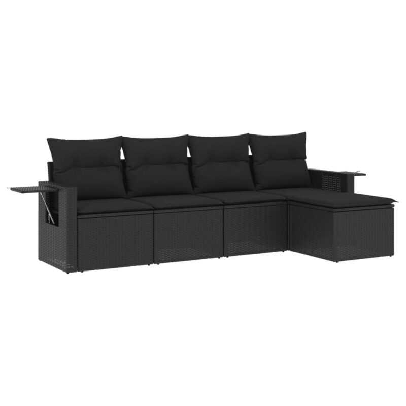 5-tlg. Garten-Sofagarnitur mit Kissen Schwarz Poly Rattan