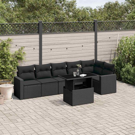 7-tlg. Garten-Sofagarnitur mit Kissen