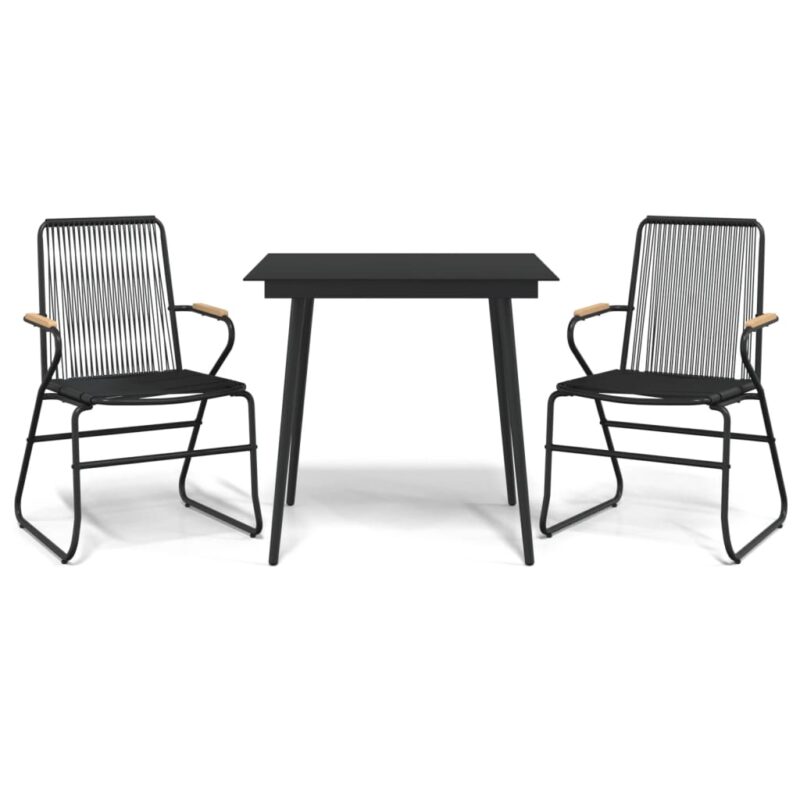 3-tlg. Garten-Essgruppe Schwarz PVC Rattan