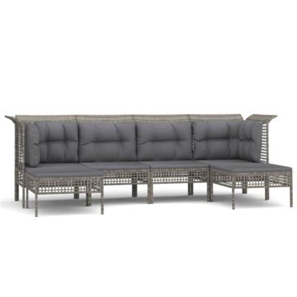 6-tlg. Garten-Lounge-Set mit Kissen Grau Poly Rattan