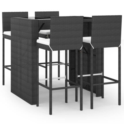 5-tlg. Gartenbar-Set mit Kissen Schwarz Poly Rattan