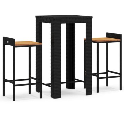 3-tlg. Gartenbar-Set Schwarz Poly Rattan & Massivholz Akazie – Massivholz Akazie
