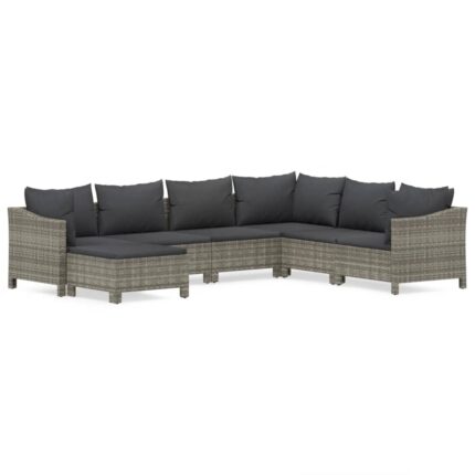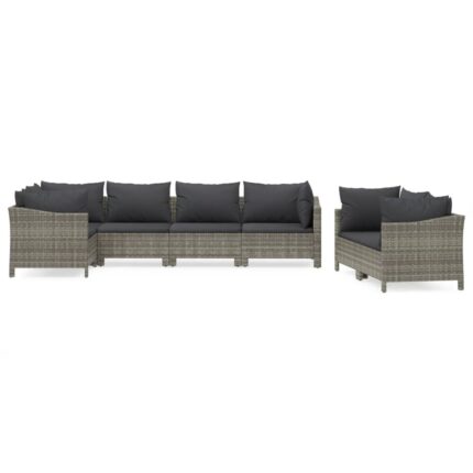 7-tlg. Garten-Lounge-Set mit Kissen Grau Poly Rattan