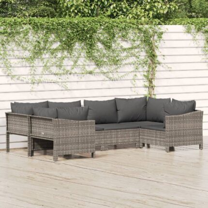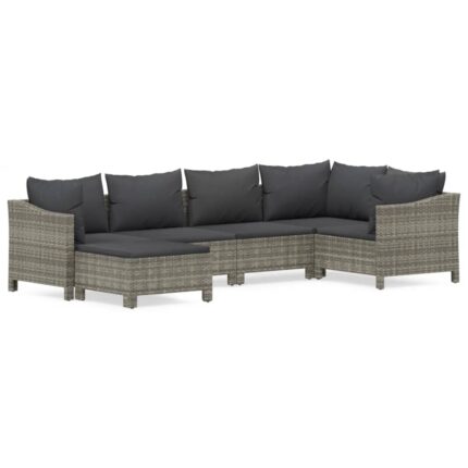 6-tlg. Garten-Lounge-Set mit Kissen Grau Poly Rattan