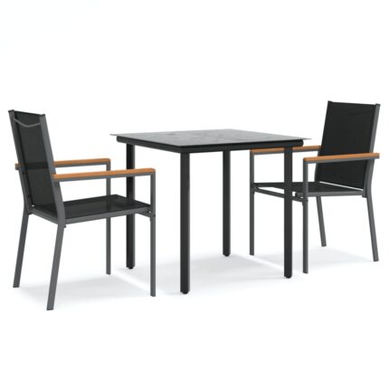 7-tlg. Garten-Essgruppe Schwarz Textilene und Stahl