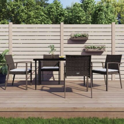 5-tlg. Garten-Essgruppe mit Kissen Poly Rattan und Stahl