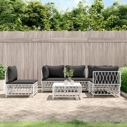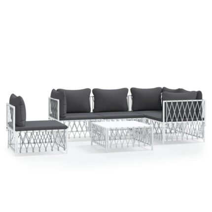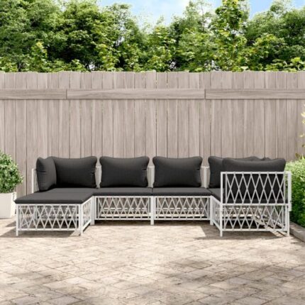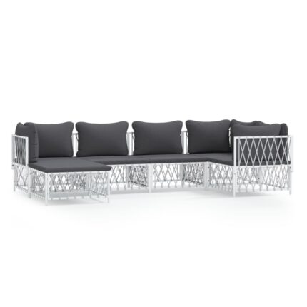 6-tlg. Garten-Lounge-Set mit Kissen Weiß Stahl