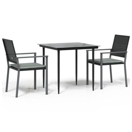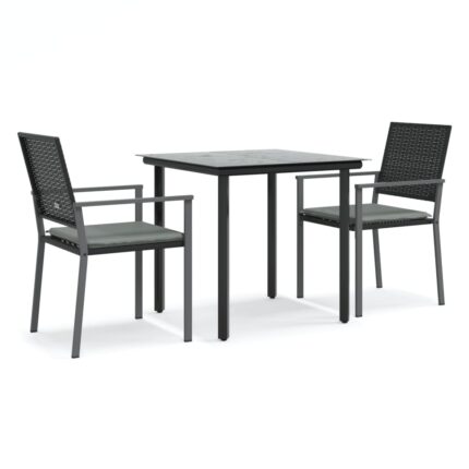 3-tlg. Garten-Essgruppe mit Kissen Poly Rattan und Stahl