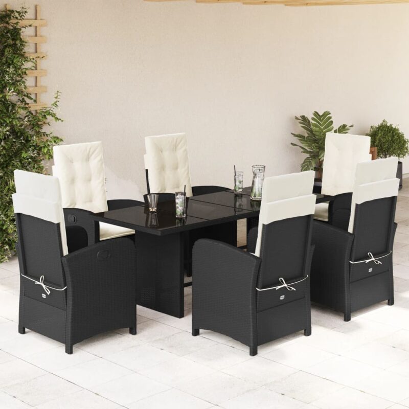 7-tlg. Garten-Essgruppe mit Kissen Schwarz Poly Rattan
