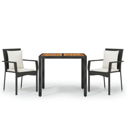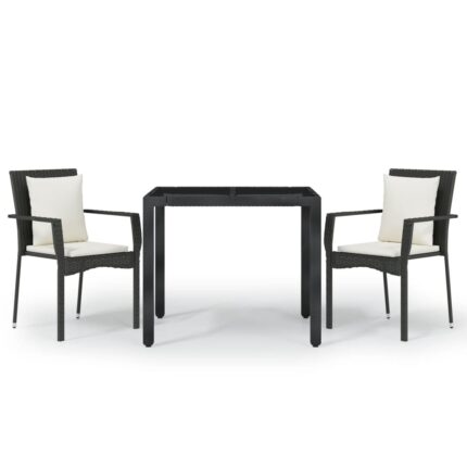 3-tlg. Garten-Essgruppe mit Kissen Schwarz Poly Rattan