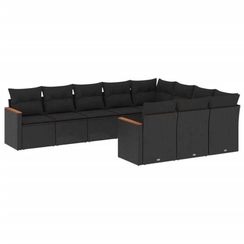 10-tlg. Garten-Sofagarnitur mit Kissen Schwarz Poly Rattan