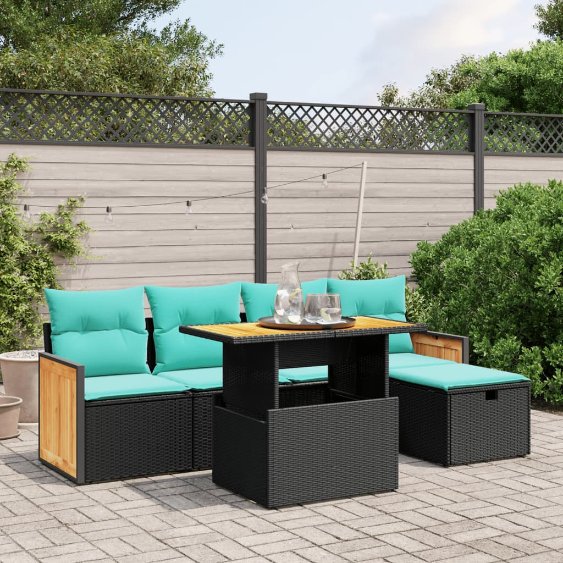 6-tlg. Garten-Sofagarnitur mit Kissen – Massivholz Akazie