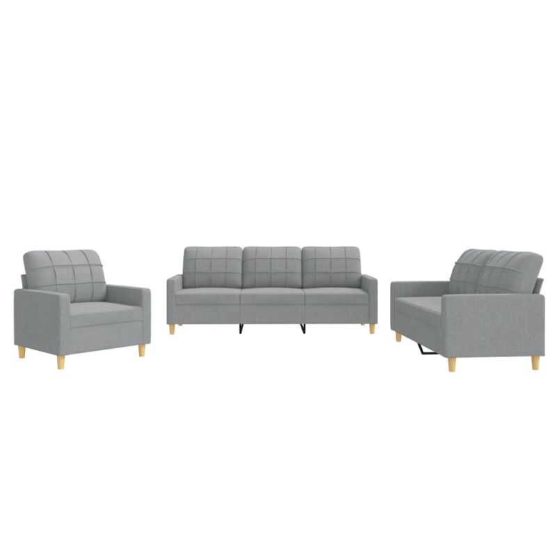 3-tlg. Sofagarnitur mit Kissen Hellgrau Stoff