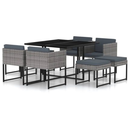 11-tlg. Garten-Essgruppe mit Kissen Poly Rattan Grau