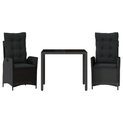 3-tlg. Garten-Essgruppe mit Kissen Schwarz Poly Rattan