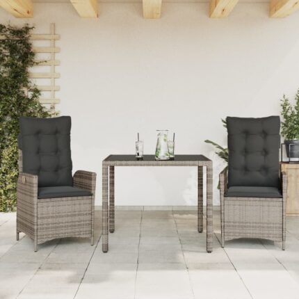 3-tlg. Garten-Essgruppe mit Kissen Grau Poly Rattan