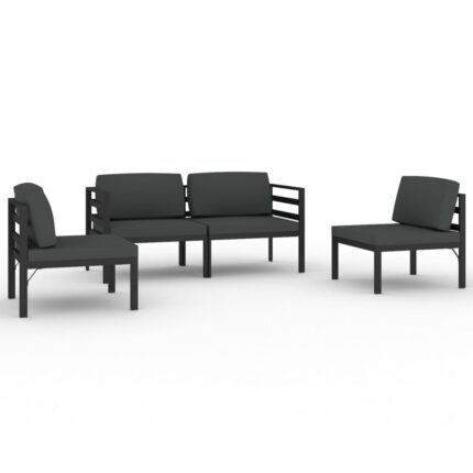 4-tlg. Garten-Lounge-Set mit Kissen Aluminium Anthrazit