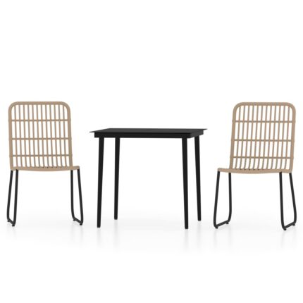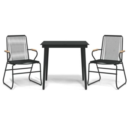 3-tlg. Garten-Essgruppe Schwarz PVC Rattan
