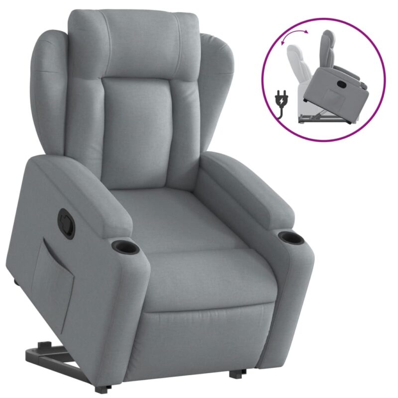 Relaxsessel mit Aufstehhilfe Hellgrau Stoff