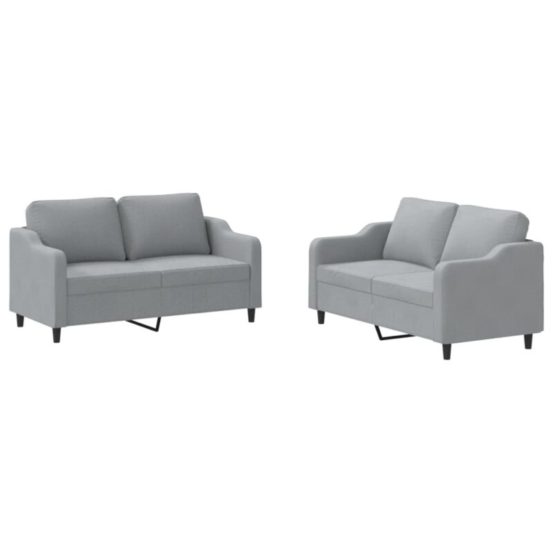 2-tlg. Sofagarnitur mit Kissen Hellgrau Stoff