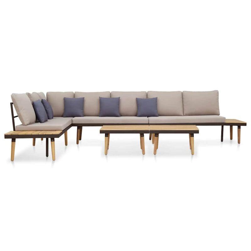 7-tlg. Garten-Lounge-Set mit Kissen Massivholz Akazie Braun – Massivholz Akazie