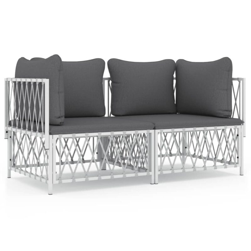 3-tlg. Garten-Lounge-Set mit Kissen Weiß Stahl