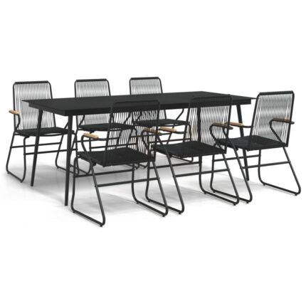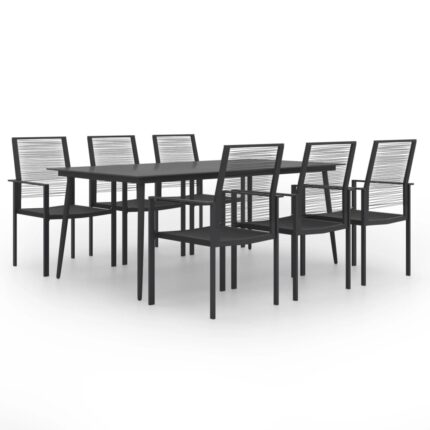 7-tlg. Garten-Essgruppe Schwarz PVC-Rattan