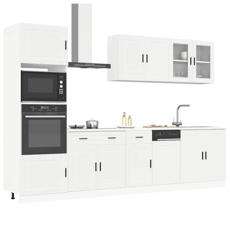 Dieses stilvolle Badmöbel-Set verfügt über 1 Hochschrank, 1 Waschbeckenunterschrank und 1 Spiegelschrank. Es schafft zusätzlichen Stauraum in Ihrem Badezimmer mit