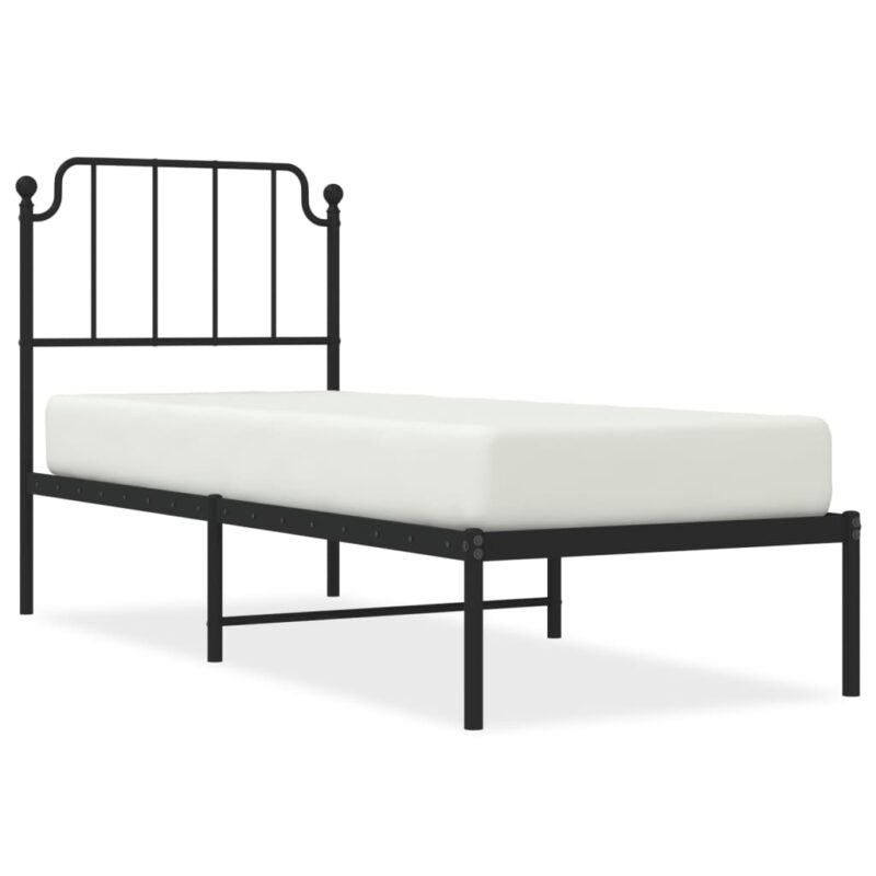 Bettgestell mit Kopfteil Metall Schwarz 100×190 cm