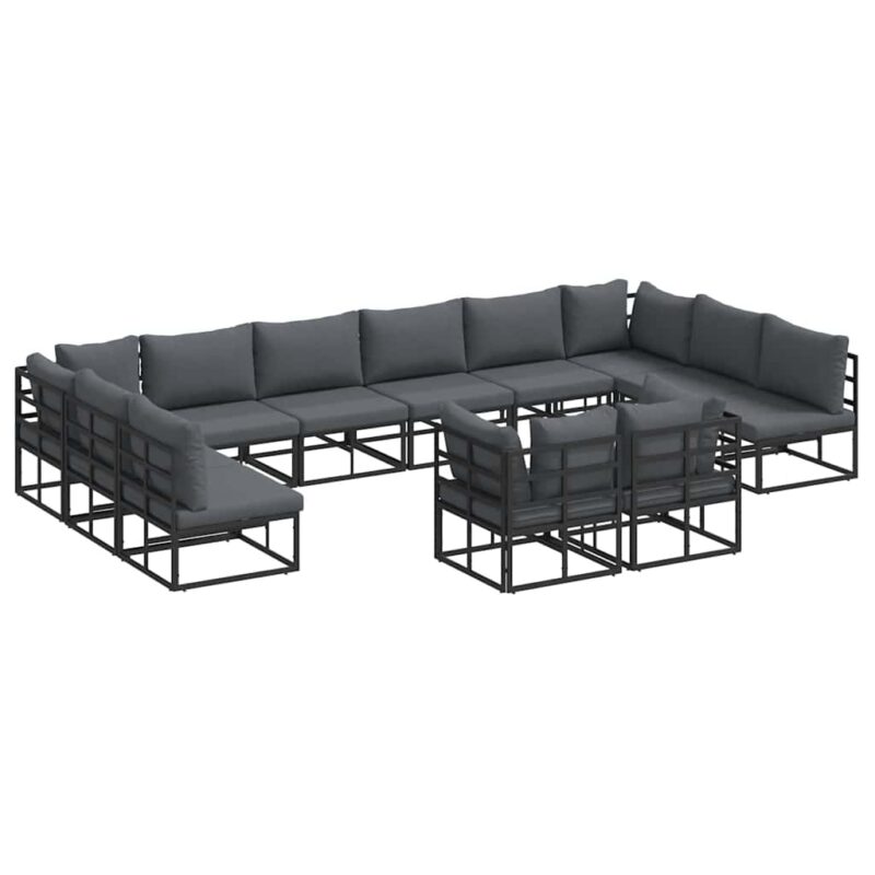 13-tlg. Garten-Sofagarnitur mit Kissen Schwarz Poly Rattan