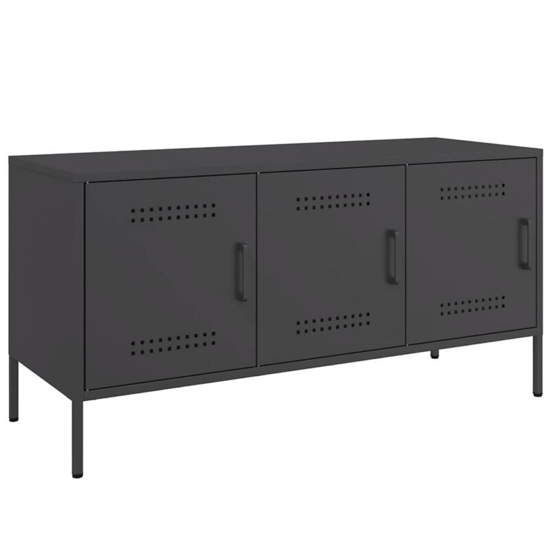 Mit seinem industriellen Design ist dieses TV-Regal aus Holz ein echter Hingucker in deinem Wohnzimmer oder Entertainment-Bereich. Es lässt sich