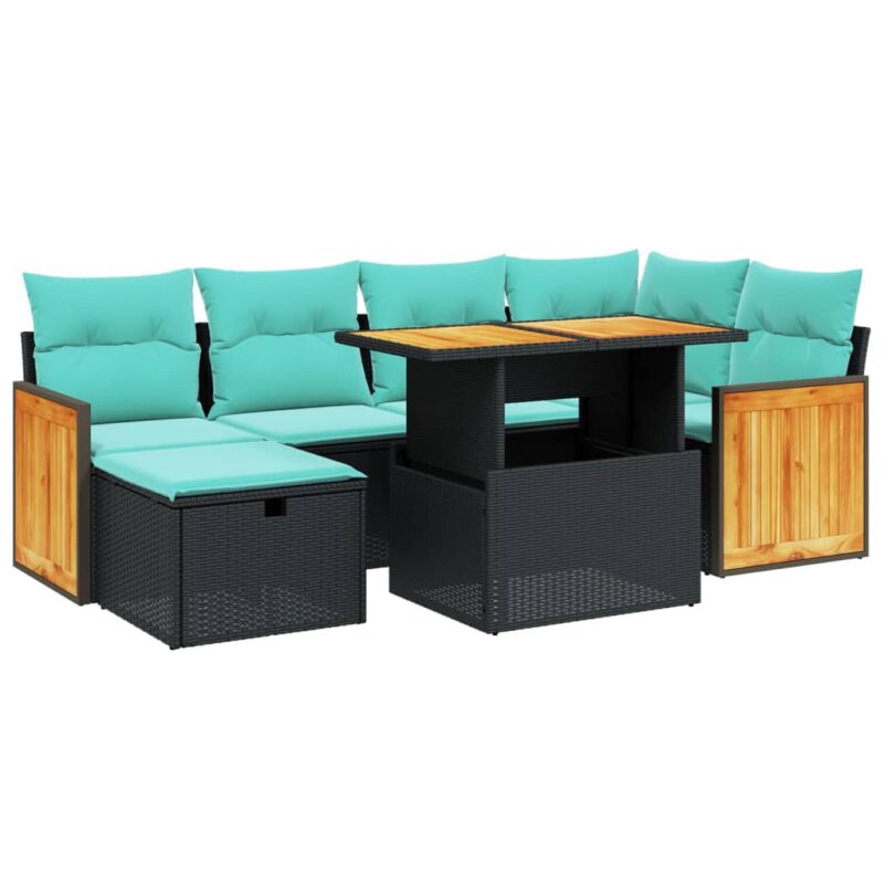 6-tlg. Garten-Sofagarnitur mit Kissen Schwarz Poly Rattan