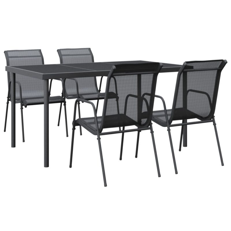 5-tlg. Garten-Essgruppe Schwarz Stahl und Textilene