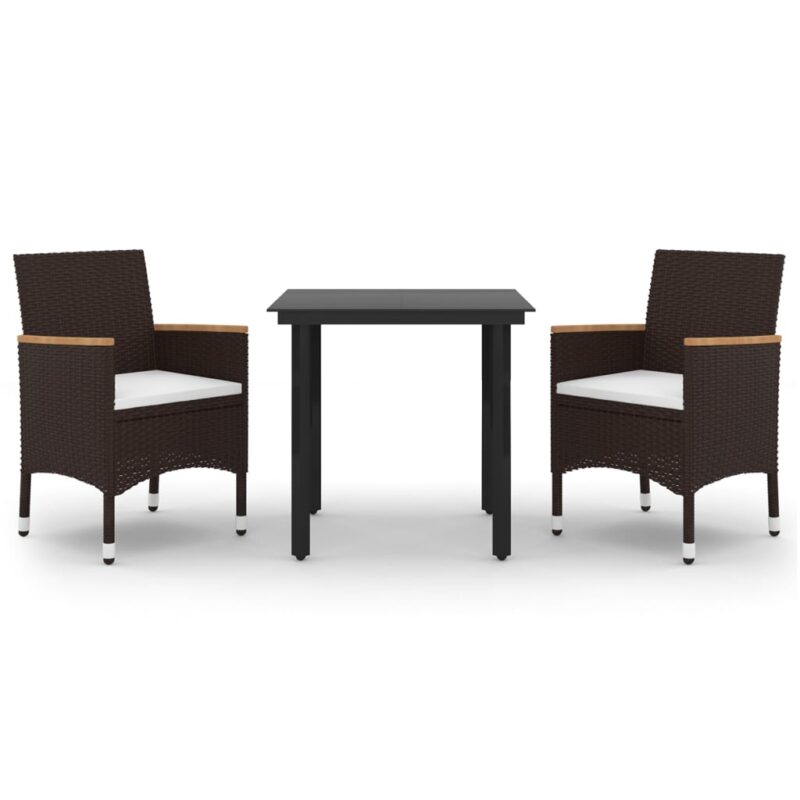 3-tlg. Garten-Essgruppe mit Auflagen Poly Rattan und Glas
