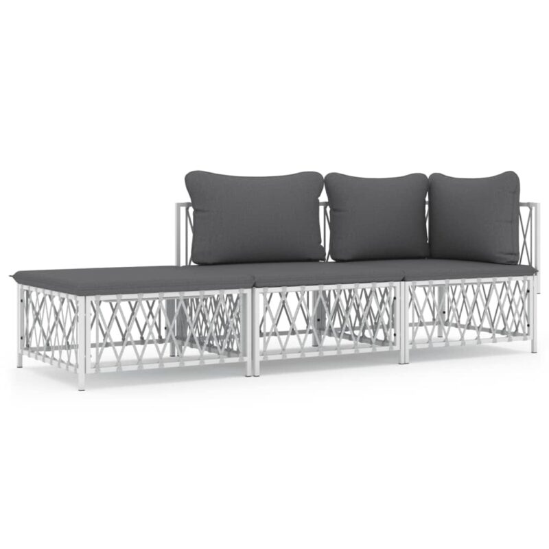 3-tlg. Garten-Lounge-Set mit Kissen Weiss Stahl