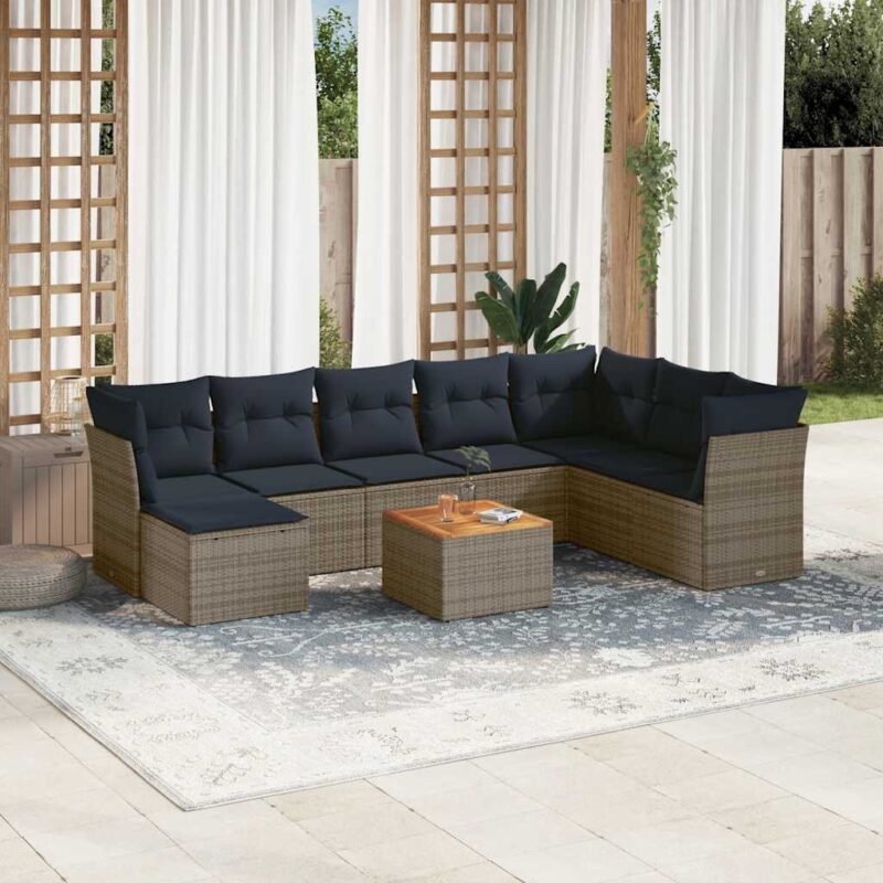 9-teiliges Gartensofa-Set mit Kissen, grau, Polyrattan