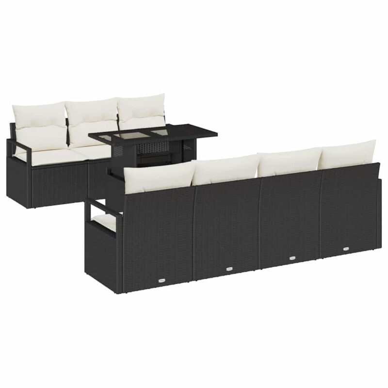 Gartensofa-set mit Speicher 8 pcs Schwarz und Creme Poly-Rattan