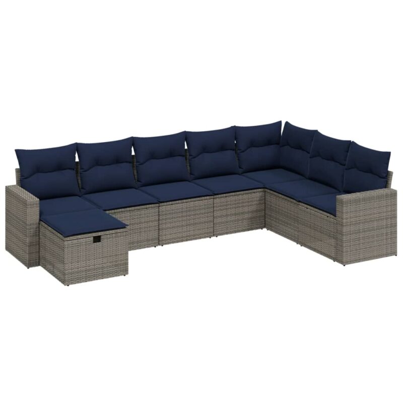 8-tlg. Garten-Sofagarnitur mit Kissen Grau Poly Rattan