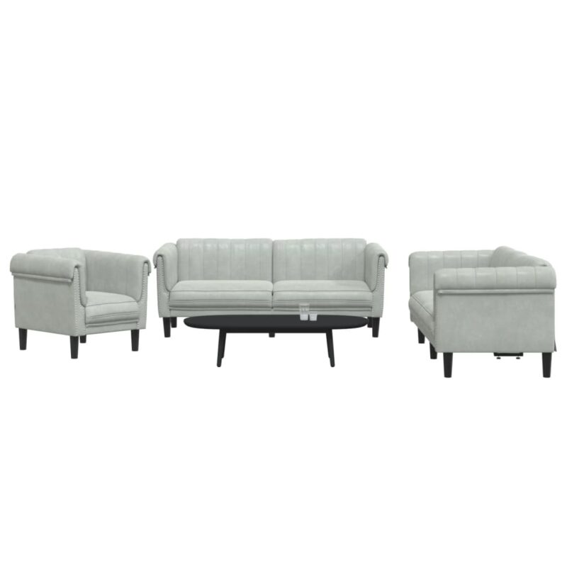 3-tlg. Sofagarnitur Hellgrau Samt