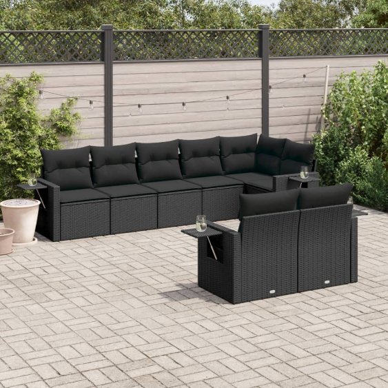 8-tlg. Garten-Sofagarnitur mit Kissen Schwarz Poly Rattan