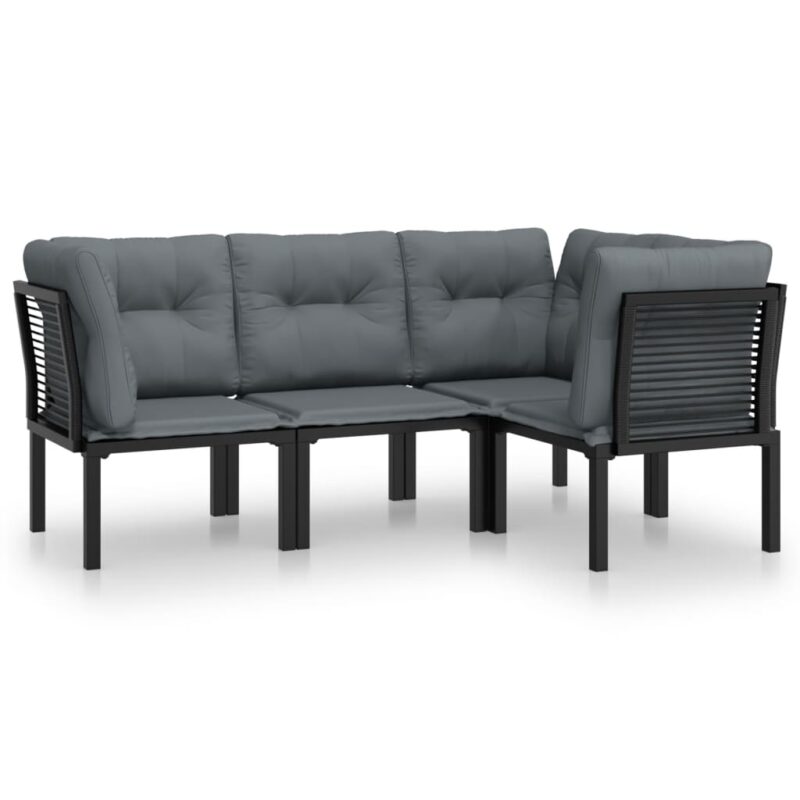 4-tlg. Garten-Lounge-Set Schwarz und Grau Poly Rattan