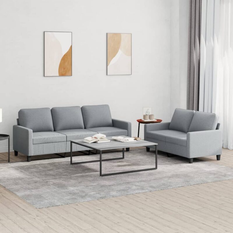 2-tlg. Sofagarnitur mit Kissen Hellgrau Stoff