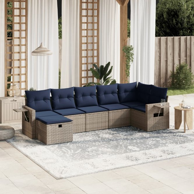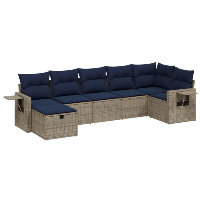 7-tlg. Garten-Sofagarnitur mit Kissen Grau Poly Rattan